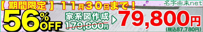 ■基本プラン、戸籍調査、本格専門調査(出身地域の歴史詳細調査、名字の詳細調査、アンケートなどの専門調査)がついて通常の50%OFF!