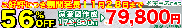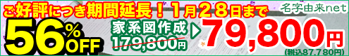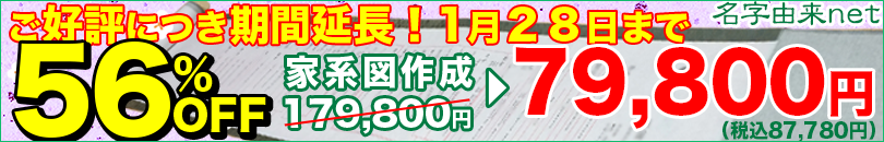 ■基本プラン、戸籍調査、本格専門調査(出身地域の歴史詳細調査、名字の詳細調査、アンケートなどの専門調査)がついて通常の50%OFF!