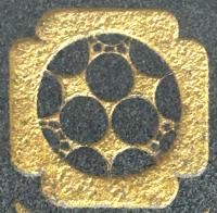 【都道府県】福岡県 親戚の家紋です。三つ星のようですが、周りの模様が分かりません。どなたか、家紋名を教えてください。